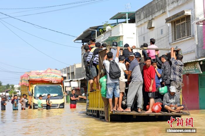 當(dāng)?shù)貢r間11月30日,印度尼西亞蘇門答臘島冷吉縣丹戎普拉鎮(zhèn),受災(zāi)民眾乘卡車出行。中新社記者 李志全 攝