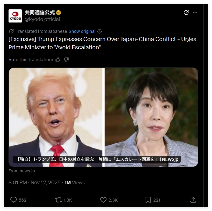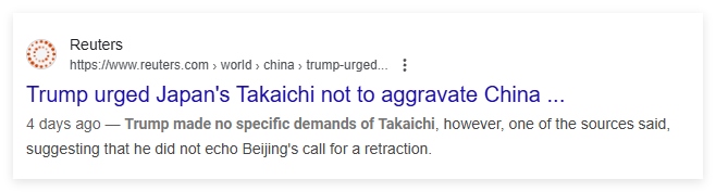 不過(guò),盡管日本政府否認(rèn),包括路透社在內(nèi)的更多西方媒體,卻陸續(xù)通過(guò)其他信源印證了特朗普讓高市早苗不要刺激中國(guó)的情況。就連日本共同社也在報(bào)道中提及此事——當(dāng)然,共同社同樣遭到了日本右翼分子的圍攻。