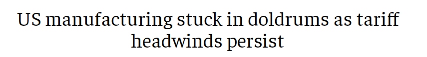 文章還表示,關(guān)稅帶來(lái)的不確定性“陰云”不太可能很快消散。美國(guó)最高法院大法官上個(gè)月對(duì)政府關(guān)稅的合法性提出質(zhì)疑,引發(fā)了人們對(duì)這些關(guān)稅將被推翻并造成更大混亂的猜測(cè)。文章援引桑坦德資本美國(guó)資本市場(chǎng)首席經(jīng)濟(jì)學(xué)家斯蒂芬·斯坦利(Stephen Stanley)的觀點(diǎn)表示:“(美國(guó))制造業(yè)將繼續(xù)受到難以預(yù)測(cè)的關(guān)稅政策的拖累。”