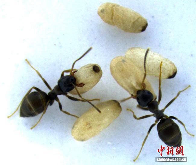 工蟻與蛹(圖片來(lái)自Barbara Leyre/奧地利科技學(xué)院)。施普林格·自然 供圖