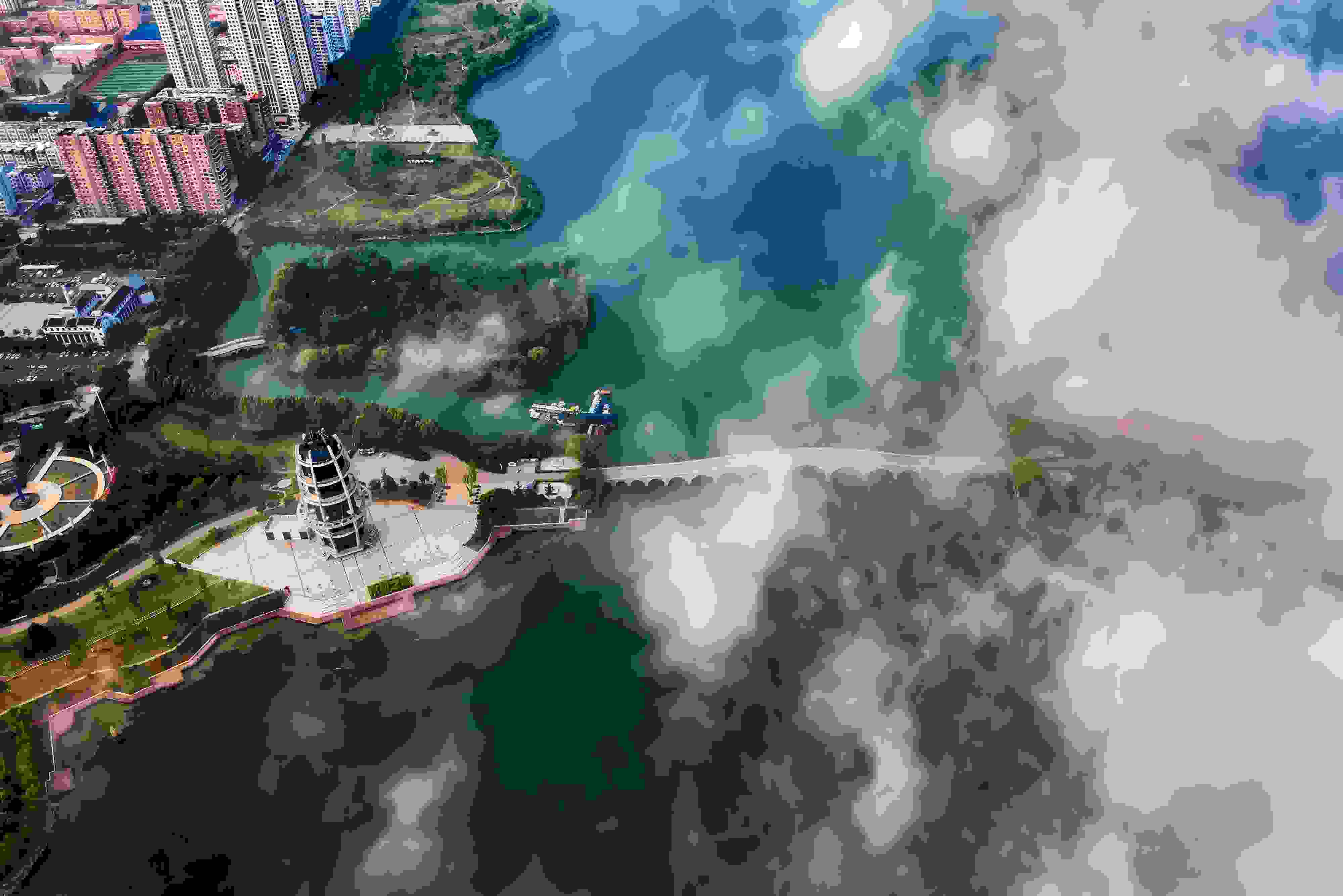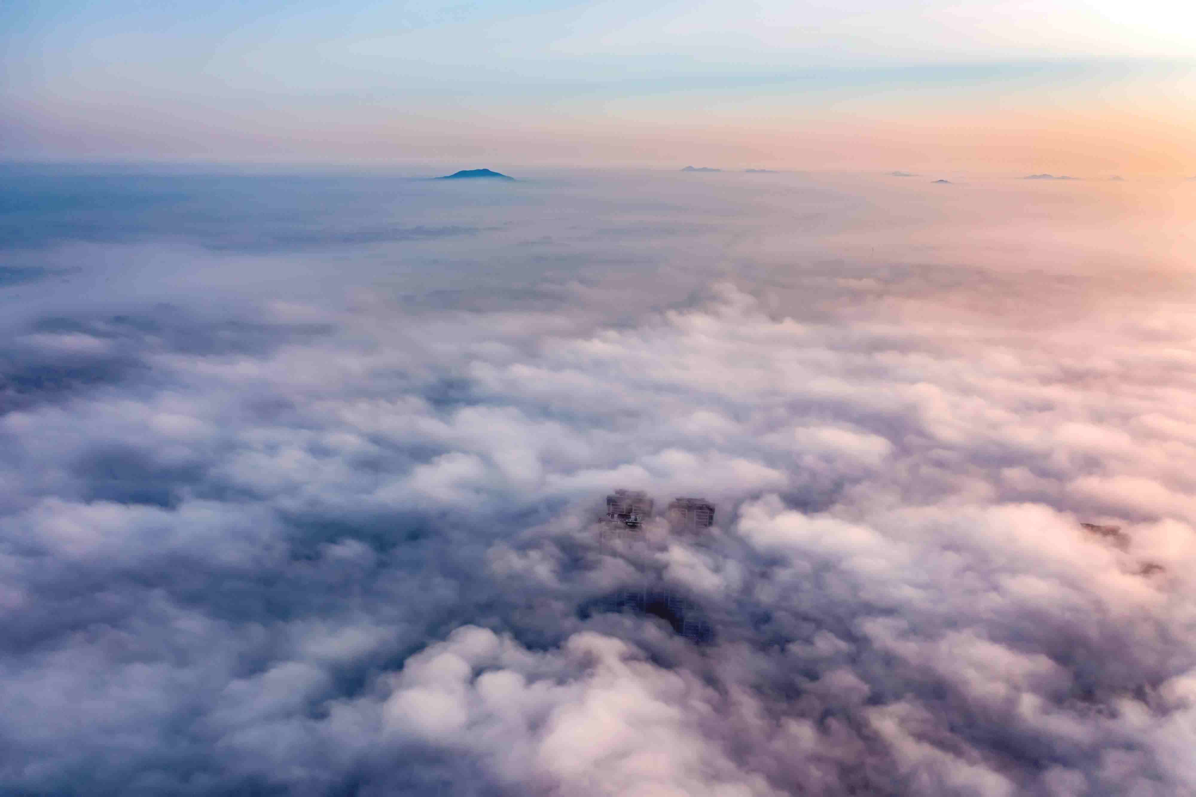 2023年6月11日,江蘇連云港東??h,城市上空云霧繚繞,蔚為壯觀。 視覺中國