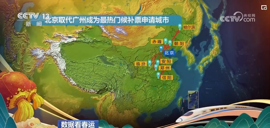 申請候補(bǔ)票的熱門路線2月7日出現(xiàn)新變化,北京取代廣州成為候補(bǔ)票申請最熱門的出發(fā)城市。從北京到朝陽、赤峰、哈爾濱、鄭州、臨汾、信陽、安陽這7個城市的候補(bǔ)票最為緊張。而從上海出發(fā)到鄭州、武漢、周口、商丘等中部城市的候補(bǔ)票也比較緊張。