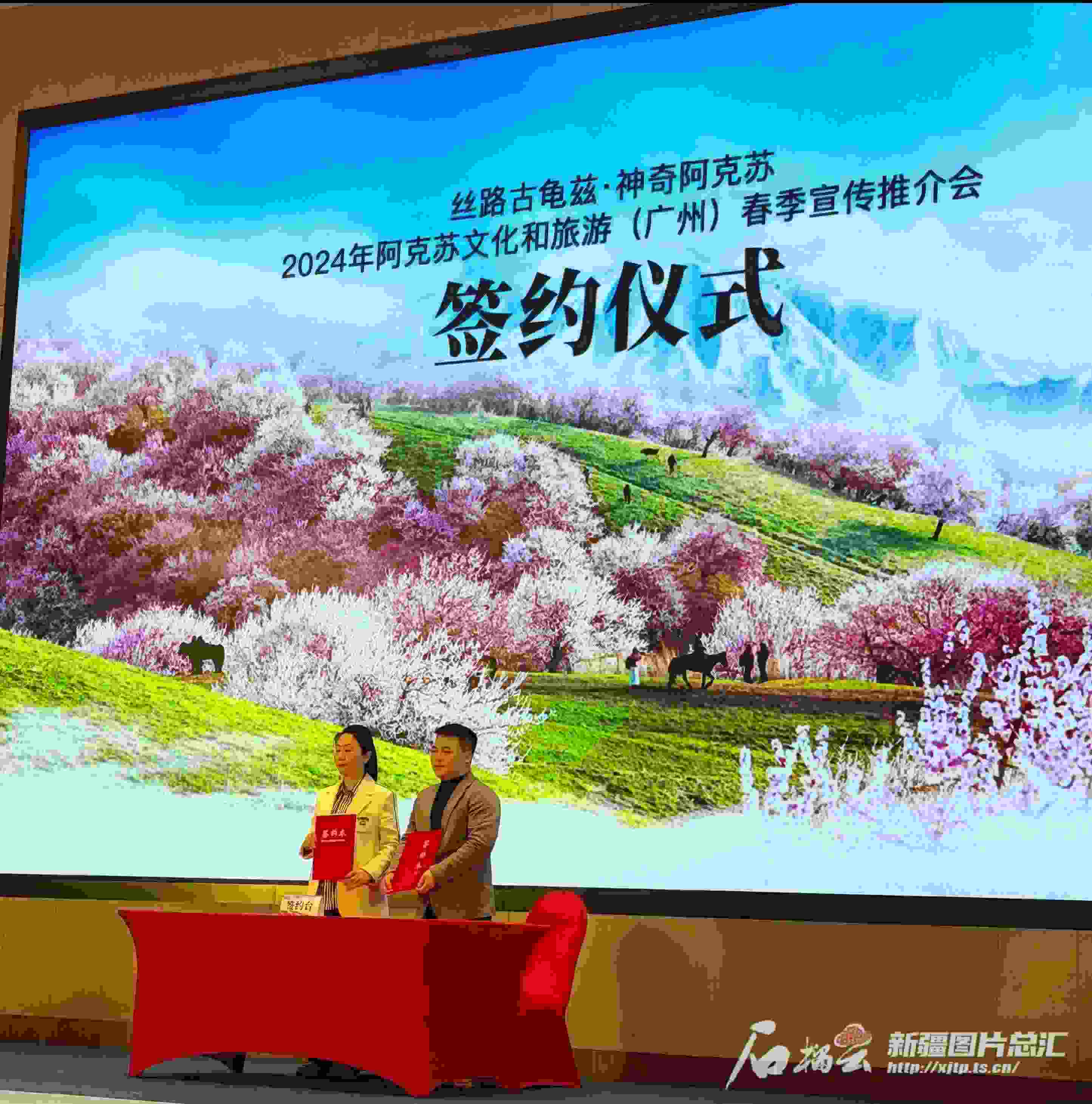 阿克蘇地區(qū)旅游企業(yè)與廣東旅游企業(yè)簽訂合作協(xié)議。阿克蘇地區(qū)文化體育廣播電視和旅游局供圖