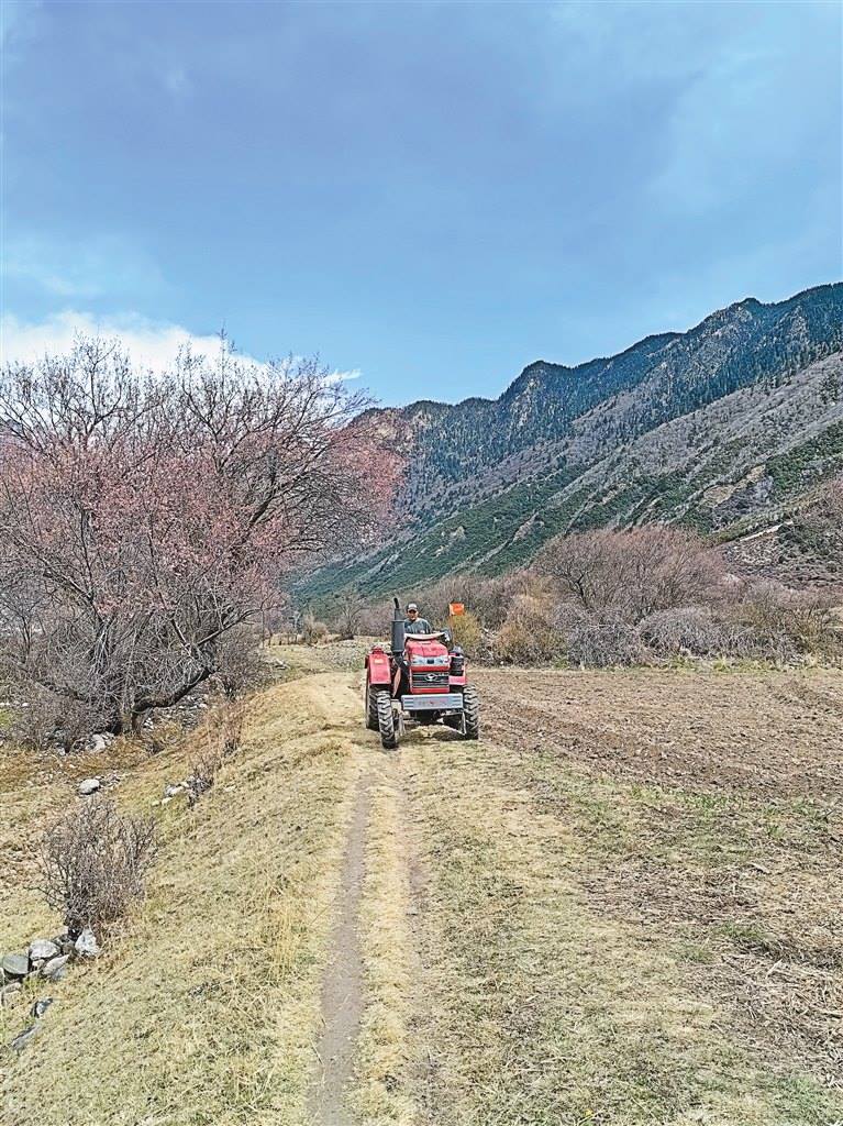 一輛紅色的旋耕機(jī)在田地旁停下來,曲美仁增邊換犁頭,邊感嘆著科技帶來的便捷:“以前耕地全靠牲畜,費(fèi)時(shí)耗力,現(xiàn)在開著旋耕機(jī)就把地耕完了,聽著這機(jī)器轟隆隆的聲音,我覺得格外開心,好像在說我們尼屋的春天特別美,我們的生活肯定也會更幸福!”