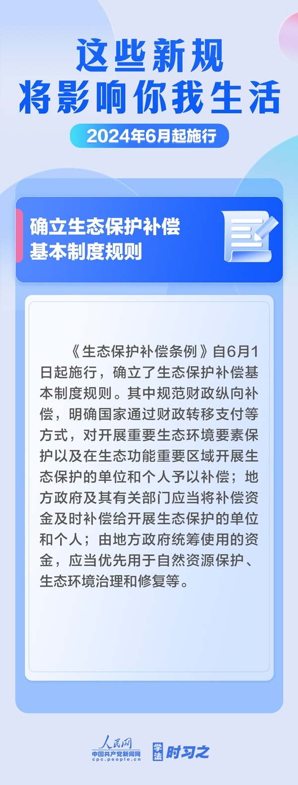 ? ? 保障糧食有效供給;確立生態(tài)保護補償基本制度規(guī)則;規(guī)范保障海警機構(gòu)依法履職……6月起,這些新規(guī)施行,將影響你我生活。