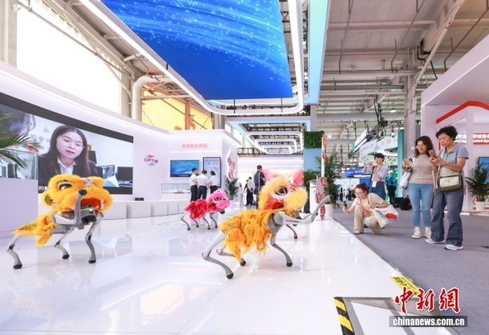 9月10日,2025年中國國際服務貿(mào)易交易會在北京首鋼園開幕。圖為觀眾參觀機器狗群舞表演。中新社記者 賈天勇 攝