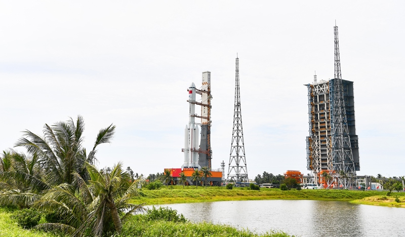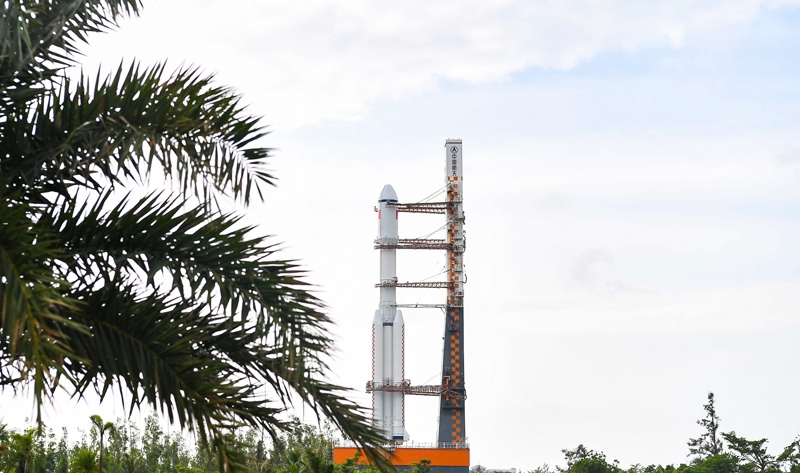 7月12日,天舟九號(hào)貨運(yùn)飛船與長(zhǎng)征七號(hào)遙十運(yùn)載火箭組合體垂直轉(zhuǎn)運(yùn)至發(fā)射區(qū)。