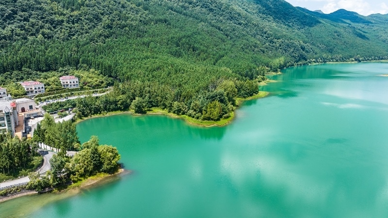 這是7月30日拍攝的六盤水市鐘山區(qū)瑤池公園風光(無人機照片)。