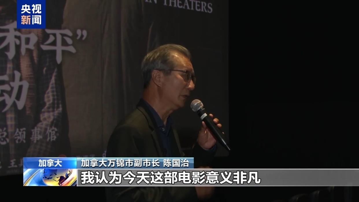 中國(guó)駐溫哥華代總領(lǐng)事曾智也出席了首映式。曾智強(qiáng)調(diào),牢記歷史的經(jīng)驗(yàn)和教訓(xùn),絕不是為了延續(xù)仇恨,而是為了以史為鑒,尊重歷史,維護(hù)和平。曾智表示,中加兩國(guó)在二戰(zhàn)期間曾經(jīng)在東方戰(zhàn)場(chǎng)并肩攜手作戰(zhàn),真誠(chéng)希望與領(lǐng)區(qū)各界一道,銘記歷史,珍愛和平,緬懷先烈,開創(chuàng)未來,共同秉持正確的二戰(zhàn)史觀,共同維護(hù)戰(zhàn)后的國(guó)際秩序,捍衛(wèi)國(guó)際的公平正義,為人類的和平與發(fā)展,共同譜寫新的篇章。