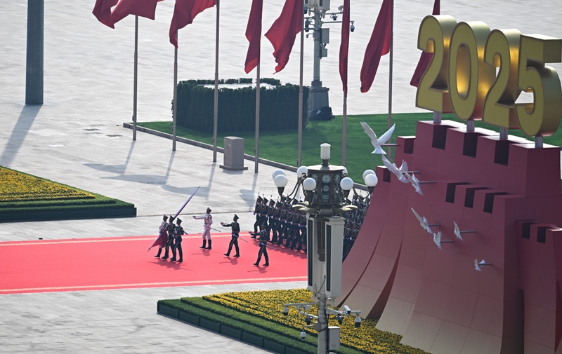 9月3日,紀(jì)念中國人民抗日戰(zhàn)爭暨世界反法西斯戰(zhàn)爭勝利80周年大會在北京隆重舉行。這是標(biāo)兵。