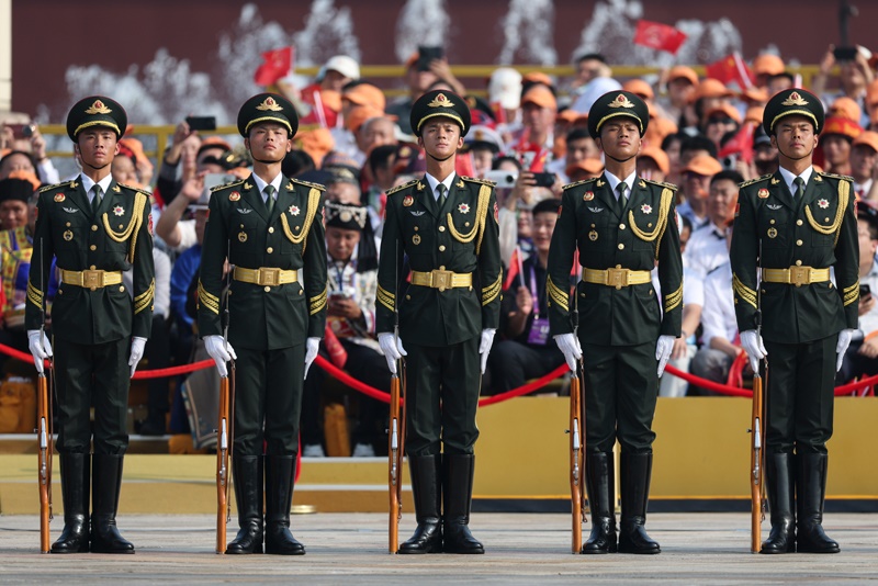 9月3日,紀(jì)念中國人民抗日戰(zhàn)爭暨世界反法西斯戰(zhàn)爭勝利80周年大會在北京隆重舉行。這是標(biāo)兵就位。