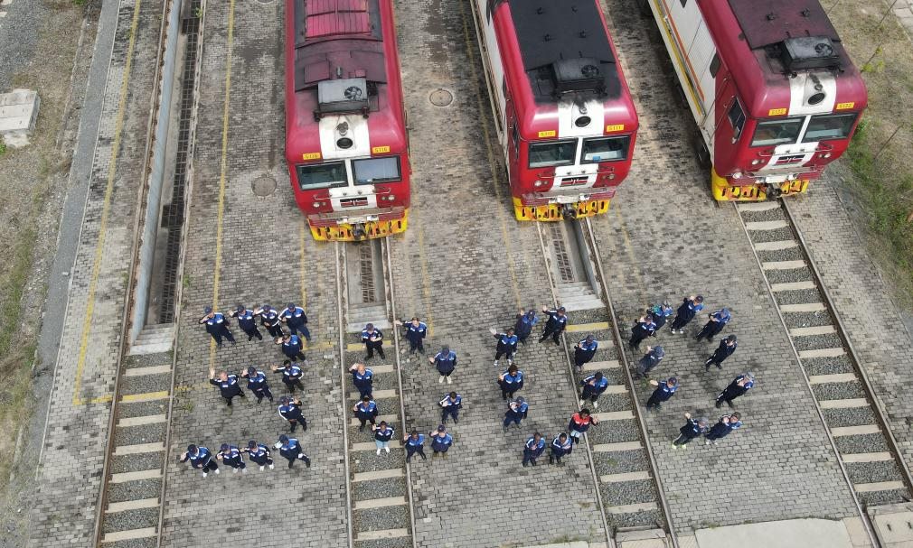 2025年8月19日,在肯尼亞內(nèi)羅畢非洲之星鐵路運營有限責任公司機務(wù)運轉(zhuǎn)整備場,中肯兩國鐵路工作者在機車前站列并組成“3000”字樣,以紀念蒙內(nèi)鐵路實現(xiàn)安全運營3000天(無人機照片)。新華社記者 楊光 攝