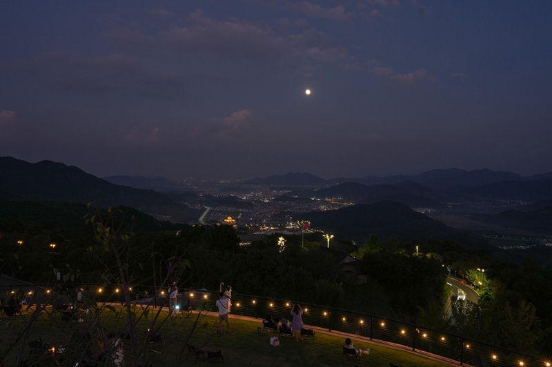 10月6日,游客在浙江省寧波市奉化區(qū)溪口鎮(zhèn)東山村一處觀(guān)景平臺(tái)賞月。