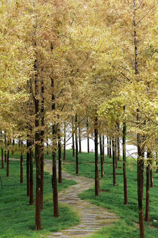 10月17日,游人在南京明孝陵景區(qū)石象路賞景游玩(無人機照片)。