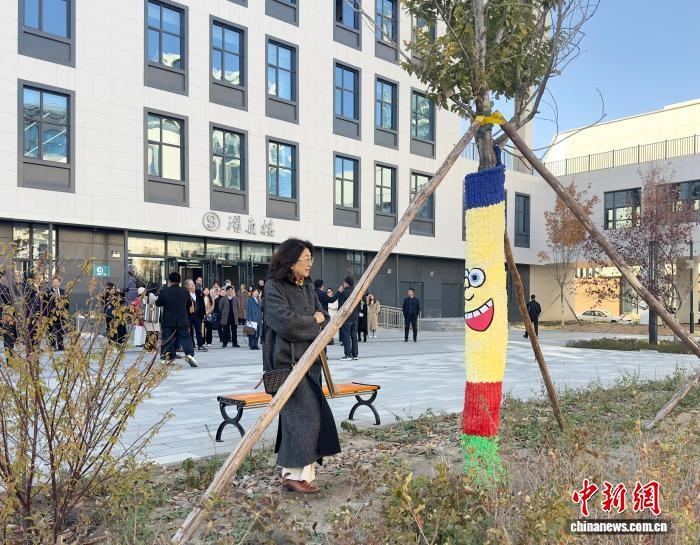 10月23日,吉林長(zhǎng)春,大學(xué)生給樹穿上棉衣。 郭佳 攝