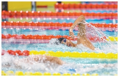 山東隊(duì)選手張展碩在十五運(yùn)會游泳項(xiàng)目男子1500米自由泳決賽中。環(huán)球時(shí)報(bào)記者 崔 萌攝