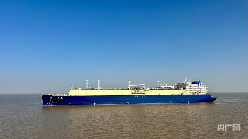“武當(dāng)”號(hào)LNG運(yùn)輸船即將靠岸(央廣網(wǎng)記者 顧煬威 攝)