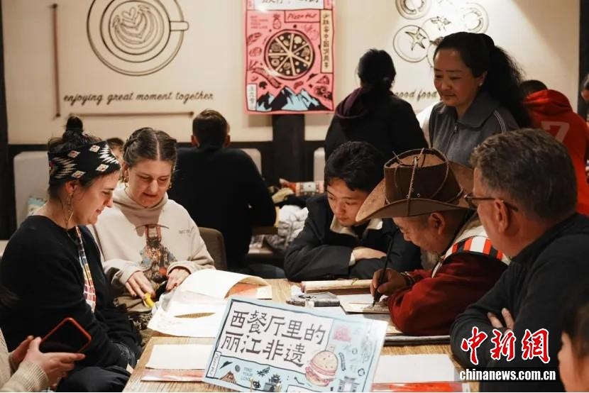 2025年3月9日,云南麗江正值納西族傳統(tǒng)節(jié)日三多節(jié),非遺傳承人和鈞與旅居麗江的民眾開(kāi)展東巴文化交流活動(dòng)。 中新社發(fā) 顧一航 攝