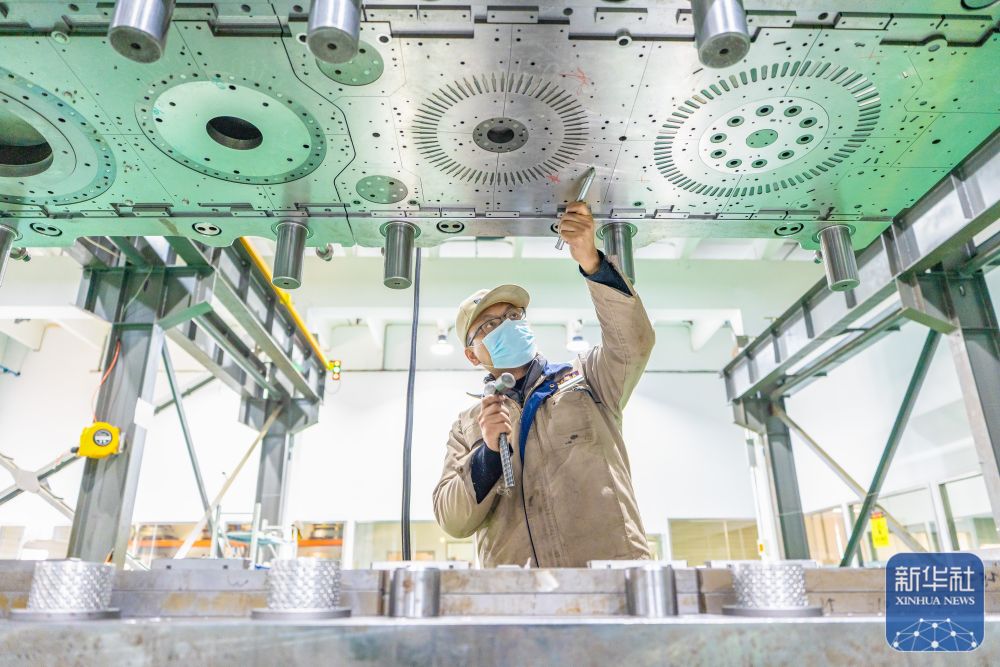 ↑ 12月15日,在位于江蘇省南通市通州區(qū)興仁鎮(zhèn)的江蘇富松模具科技有限公司車(chē)間內(nèi),工人趕制模具產(chǎn)品訂單。新華社發(fā)(翟慧勇攝)