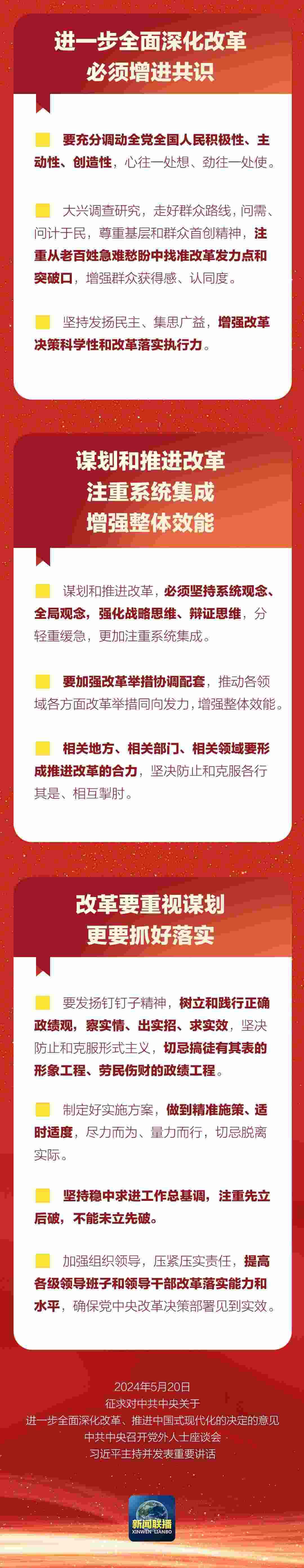 中共中央5月20日在中南海召開(kāi)黨外人士座談會(huì),就中共中央關(guān)于進(jìn)一步全面深化改革、推進(jìn)中國(guó)式現(xiàn)代化的決定聽(tīng)取各民主黨派中央、全國(guó)工商聯(lián)負(fù)責(zé)人和無(wú)黨派人士代表的意見(jiàn)建議。中共中央總書(shū)記習(xí)近平主持座談會(huì)并發(fā)表重要講話。