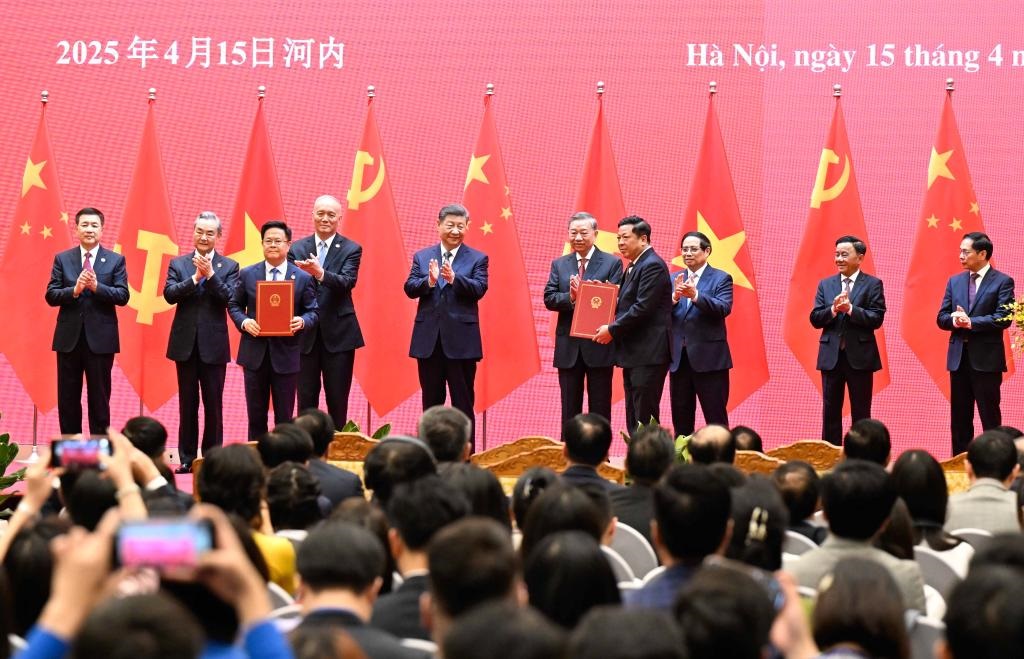 會談后,兩黨總書記共同見證中越雙方簽署的45份雙邊合作文本展示,涵蓋互聯(lián)互通、人工智能、海關(guān)檢驗(yàn)檢疫、農(nóng)產(chǎn)品貿(mào)易、文化和體育、民生、人力資源開發(fā)、媒體等領(lǐng)域。